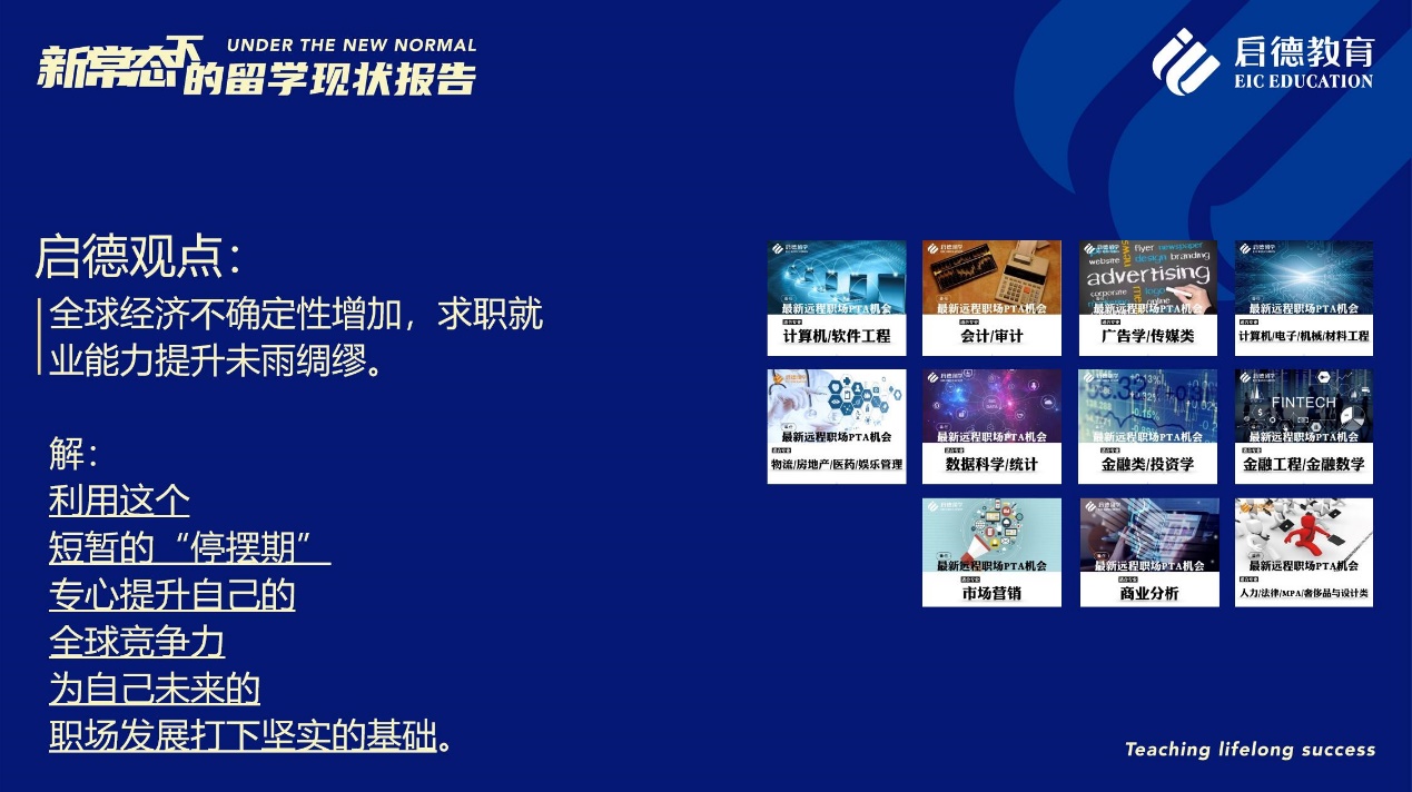 啟德留學(xué)美研項(xiàng)目總監(jiān)金鑫建議,對(duì)于正在準(zhǔn)備留學(xué)申請(qǐng)、求職就業(yè)的同學(xué)來說,在密切關(guān)注相關(guān)國家與院校政策的同時(shí),不妨利用這段時(shí)間參加線上科研項(xiàng)目,或是參加遠(yuǎn)程實(shí)習(xí)及遠(yuǎn)程 PTA ( Part-Time Assistant )項(xiàng)目,豐富學(xué)術(shù)或職場(chǎng)經(jīng)歷,為留學(xué)申請(qǐng)和求職就業(yè)積累背景、提高競(jìng)爭(zhēng)力。