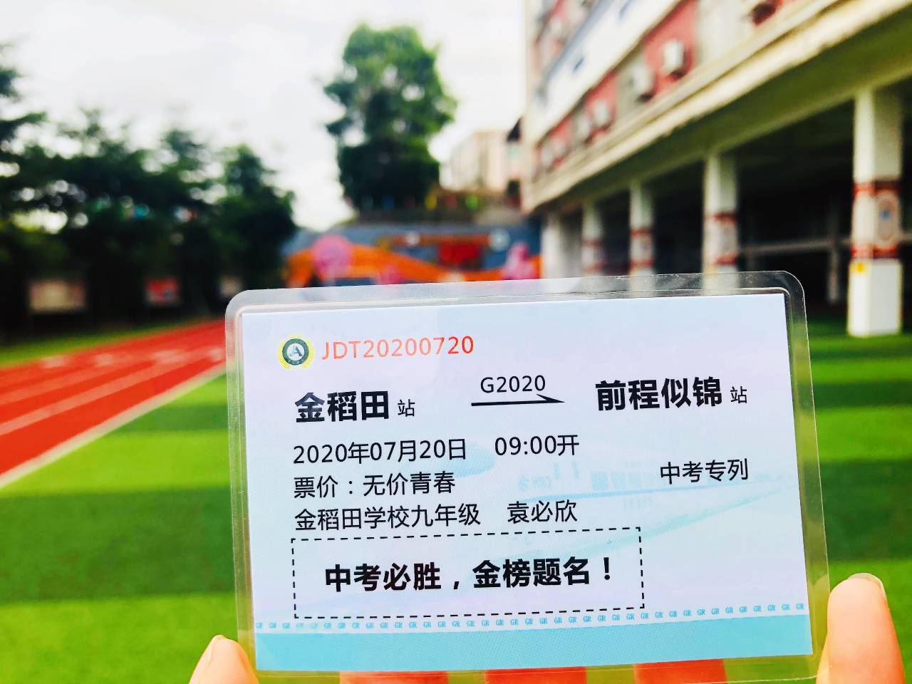 龍崗區(qū)金稻田學校的學子們趕往考場前,校長老師們送上了“護考車票”,通往“前程似錦”!目前,學子們在交警的護送下已順利到達考場。(記者李麗、周紅聲)