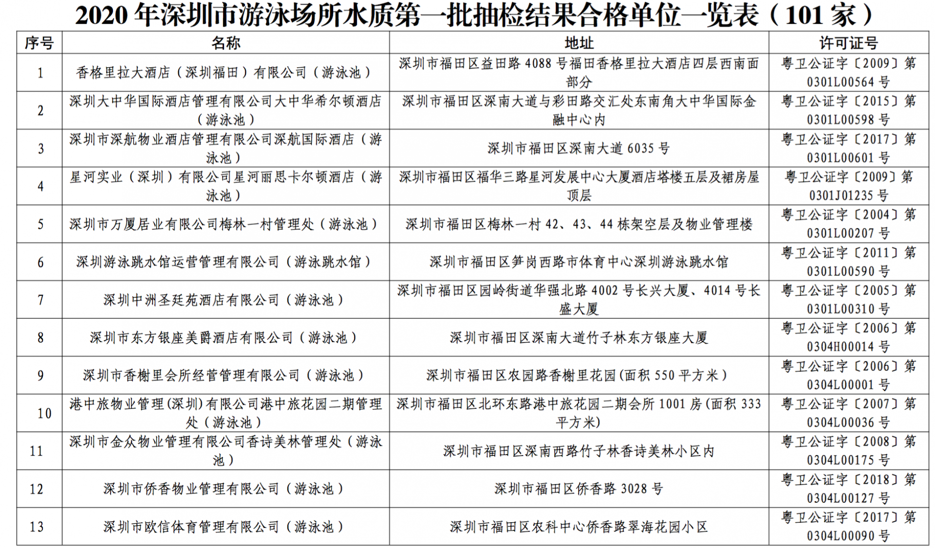 原標題 游泳去?深圳第一批游泳場所水質(zhì)抽檢結(jié)果:這2家不合格