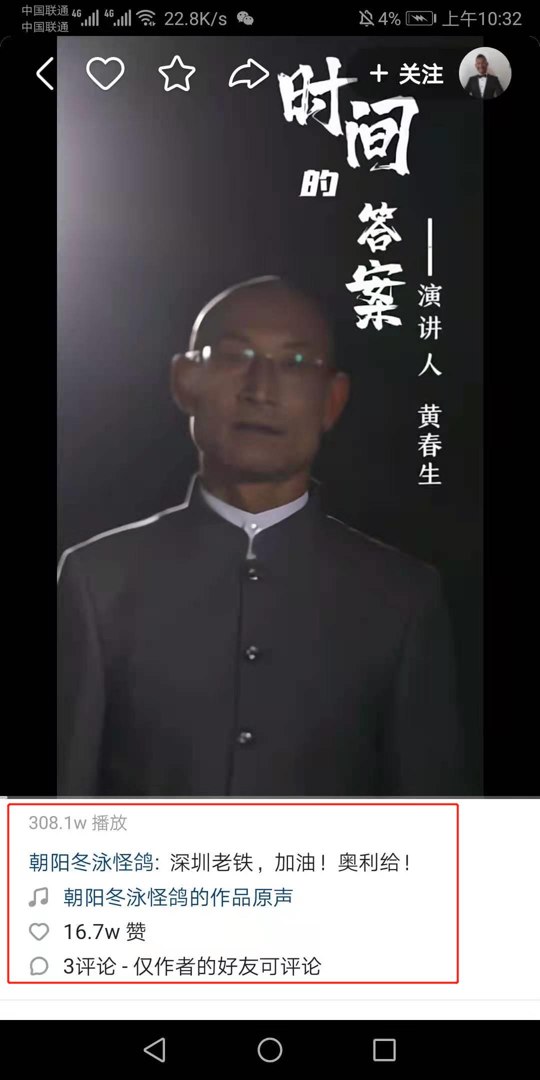 而奧利給大叔快手賬號(hào)中,給深圳獻(xiàn)詩(shī)的視頻播放量已超300萬(wàn)!獲贊達(dá)16萬(wàn)!