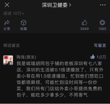記者注意到,陶先生讓外賣小哥免費吃包子,最早引發(fā)關(guān)注,是源自疫情特殊時期他在深圳衛(wèi)健委下的一條留言:“外賣小哥在用1.5倍速播放,忙到他們想吃口飯都很麻煩,可能忙到?jīng)]時間等一份炒菜,我們所有門店給外賣小哥提供免費的包子,能吃多少拿多少,不用客氣?!?/p>