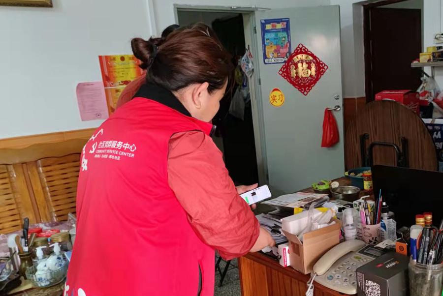 △ 關(guān)工委委員參與安心行動,為老年人打印核酸碼