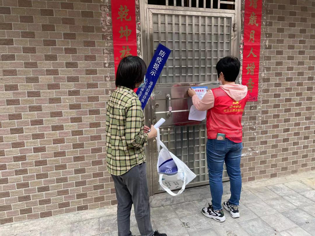 △ 關(guān)工委委員趙為兵、賴碧梅帶頭參與疫情防控工作,動員轄區(qū)物業(yè)、熱心居民共同參與抗疫志愿服務(wù)