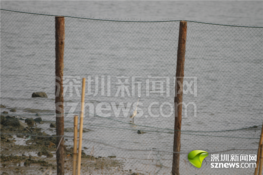 4月18日下午,記者來到深圳灣公園,發(fā)現(xiàn)網(wǎng)友所說的圍網(wǎng)區(qū)域位于廣東內(nèi)伶仃島福田國家級自然保護(hù)區(qū)內(nèi)。在現(xiàn)場記者沒有發(fā)現(xiàn)有海鳥受傷死亡的尸體,但是沿著海岸線,大量的圍網(wǎng)確實存在,圍網(wǎng)用藍(lán)色的尼龍繩制成,韌性很強(qiáng),耐腐蝕。這些隔離網(wǎng)安裝在水陸交接的地方,用木樁固定,高度大概在1米左右,綿延在海岸線上,有的甚至一眼看不到盡頭。而對于這些網(wǎng)的用途,現(xiàn)場并沒有相關(guān)的提示和公告。