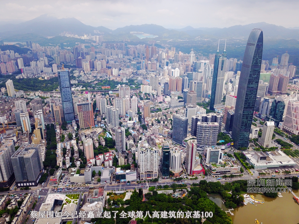 2011年,441.8米高的京基100大廈在距離地王大廈不遠(yuǎn)的地方建成。兩個超高建筑選址蔡屋圍,可謂眼光一致。
