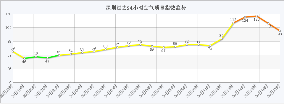 PM2.5監(jiān)測網數據:深圳空氣指數全天最差的時段是下午三點。