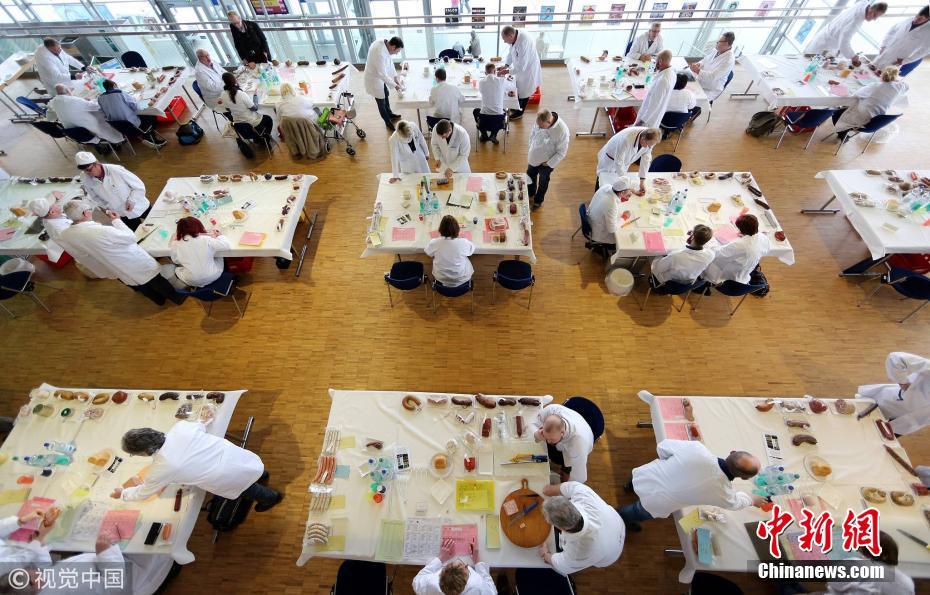 當(dāng)?shù)貢r(shí)間2018年2月28日,德國(guó)愛爾福特,當(dāng)?shù)嘏e辦香腸廚藝比賽。圖片來源:視覺中國(guó)