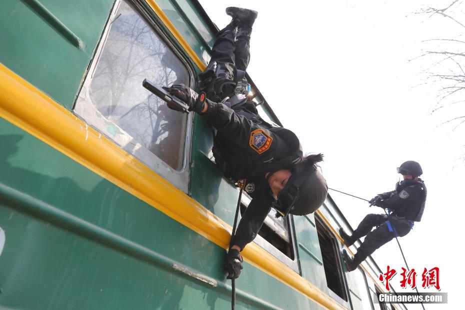 3月6日,北京鐵路公安處特警支隊(duì)鐵鷹突擊隊(duì)副大隊(duì)長(zhǎng)鮑金鳳帶著男隊(duì)員進(jìn)行科目訓(xùn)練。在男性占絕大多數(shù)的的特警支隊(duì)中,女特警格外亮眼。進(jìn)入2018春運(yùn)以來(lái),30歲的鮑金鳳隊(duì)長(zhǎng)擔(dān)負(fù)起新學(xué)員的訓(xùn)練工作,每天帶早操,一天四練,體能、射擊、綜合技能,高難度的科目動(dòng)作,這個(gè)女隊(duì)長(zhǎng)為男警員做示范。中新社記者楊可佳 攝
