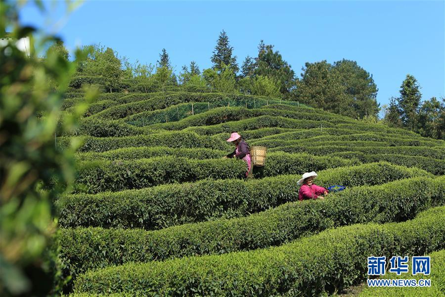4月2日,茶農(nóng)在重慶市南川區(qū)興又緣茶園采摘春茶。新華社記者韓曄攝