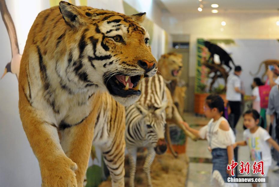 5月27日,各類飛禽走獸活靈活現(xiàn)地出現(xiàn)在民眾的眼前。正在福建博物院展出的第四屆中國動(dòng)物標(biāo)本大賽的257件惟妙惟肖的標(biāo)本作品集中對(duì)外開放,讓民眾如進(jìn)入“動(dòng)物世界”。本次大賽匯集了全國標(biāo)本制作企業(yè)、博物館、大專院校、研究所等60多家單位參加,標(biāo)本涵蓋哺乳類、鳥類、爬行類、兩棲類、魚類等動(dòng)物類群的皮張和骨骼標(biāo)本。主辦方希望通過標(biāo)本大賽,向公眾展現(xiàn)動(dòng)物世界的美麗,宣傳生物多樣性和生態(tài)文明,借鑒吸收國際標(biāo)本制作先進(jìn)經(jīng)驗(yàn),提高中國野生動(dòng)植物標(biāo)本制作的整體水平。圖為參賽的老虎標(biāo)本。中新社記者 張斌 攝