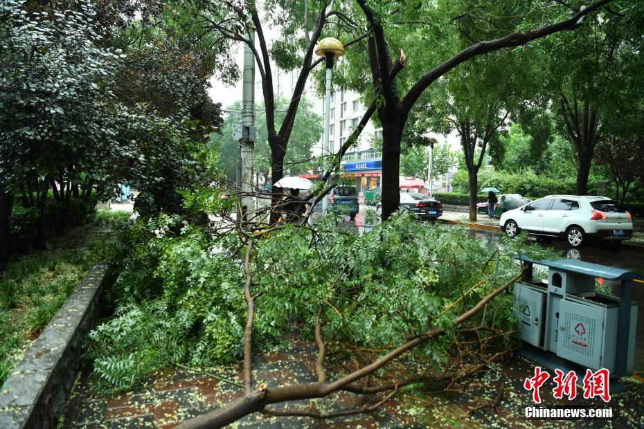 7月16日下午,河北石家莊街頭,樹枝被暴風雨折斷。當日,該省氣象臺發(fā)布暴雨藍色預(yù)警,承德、雄安新區(qū)、廊坊北部、石家莊中西部、邢臺西部等多地遭受暴雨襲擊。中新社記者翟羽佳 攝