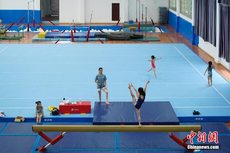 7月16日,小學員在貴州榕江縣少年兒童業(yè)余體操運動學校內(nèi)進行體操訓練。位于月亮山深處的貴州省黔東南苗族侗族自治州榕江縣,數(shù)十年來堅持少年兒童體操培養(yǎng)、訓練,對于全縣有良好身體條件的少年兒童進行免費集中培訓。目前該縣每年有60余名兒童在業(yè)余體操運動學校進行訓練。炎炎夏日,孩子們不懼酷暑,刻苦訓練追尋著自己的“體操夢”。據(jù)了解,自1972年以來,榕江縣先后向貴州省體操隊、蹦床隊輸送了21名運動員;其中有6名運動員進入國家體操隊,10名運動員榮獲“國家健將級運動員”稱號,5名運動員榮獲“國際健將級運動員”稱號,其中體操名將劉榕冰是2014年體操世錦賽男團冠軍成員之一。2004年,榕江縣被貴州省體育局授予“貴州體操之鄉(xiāng)”稱號。中新社記者賀俊怡 攝