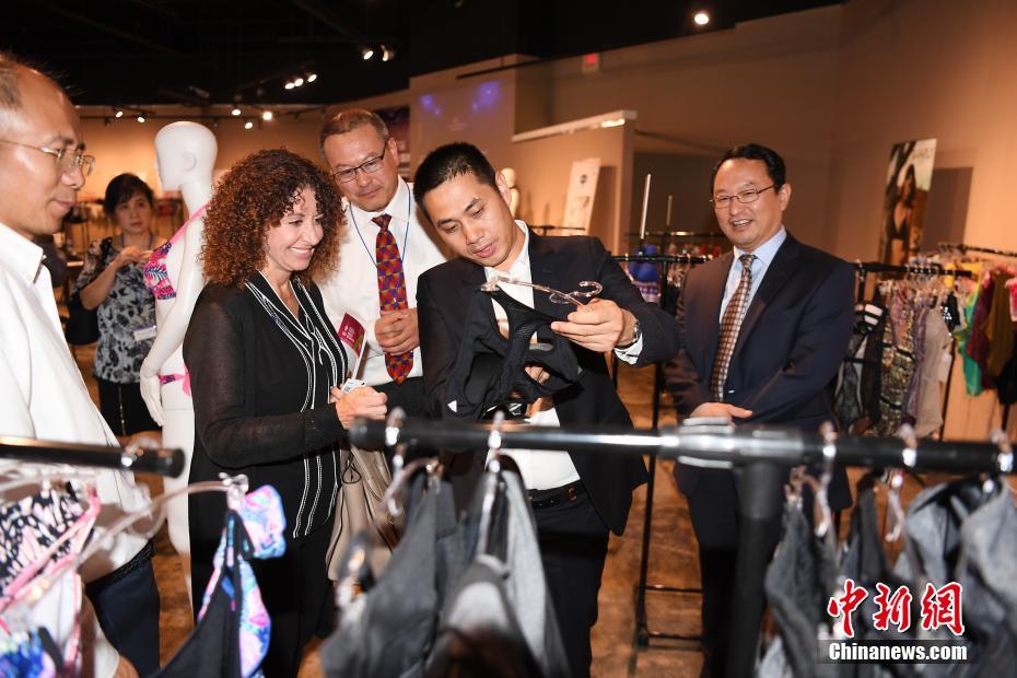 當?shù)貢r間7月17日,深圳市內(nèi)衣行業(yè)協(xié)會在中美國際(美東)創(chuàng)業(yè)港——默特爾比奇市Waccoma Center舉行深圳內(nèi)衣產(chǎn)業(yè)推介會暨深圳內(nèi)衣美國展銷中心揭牌儀式。中美國際(美東)創(chuàng)業(yè)港聯(lián)合深圳市內(nèi)衣行業(yè)協(xié)會為深圳內(nèi)衣品牌進駐美東市場搭建綠色通道和產(chǎn)業(yè)孵化平臺,采用“時尚秀+靜態(tài)展”的形式,促進中美內(nèi)衣文化和時尚的交流。圖為默特爾比奇市市長布蘭達Brenda Bethune女士參觀深圳內(nèi)衣展廳。 中新社記者 陳文 攝