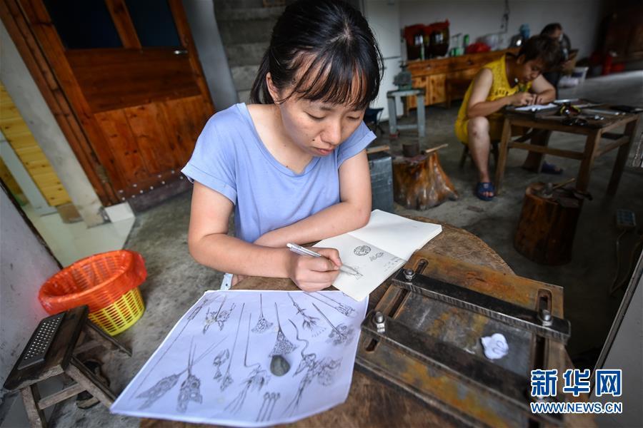 龍懂陽的弟弟龍?zhí)栆彩倾y飾工藝傳人。和哥哥不同,弟弟主打的是銀飾文化體驗(yàn)游,用自家傳統(tǒng)苗寨開設(shè)民宿,游客在此居住的同時(shí),還能學(xué)習(xí)體驗(yàn)銀飾品制作。每年暑期一到,家長(zhǎng)孩子絡(luò)繹不絕。新客源、新銷路、新模式帶動(dòng)雷山縣銀飾業(yè)不斷發(fā)展壯大,成為脫貧攻堅(jiān)的重要產(chǎn)業(yè)。2017年,雷山縣控拜、麻料、烏高三個(gè)村銀飾品及相關(guān)產(chǎn)業(yè)銷售額超過1.5億元,吸引很多外出打工的年輕人回家創(chuàng)業(yè)。苗寨鍛銀聲在綠水青山間響遍千戶,也漸漸走出大山,聲名遠(yuǎn)播。新華社記者 李芒茫 攝