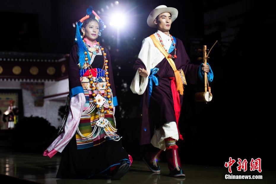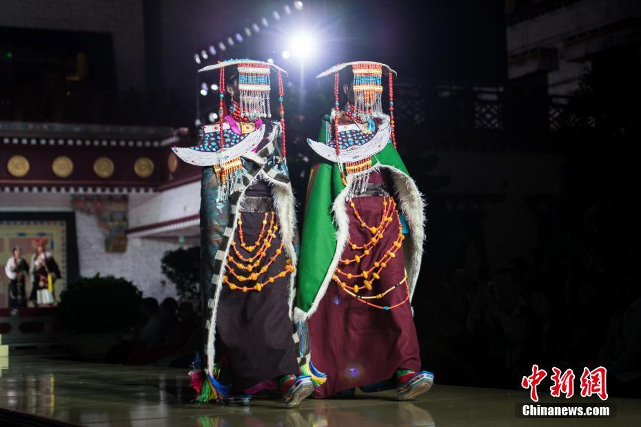 8月12日晚,由西藏職業(yè)技術(shù)學(xué)院與北京服裝學(xué)院共同打造的“凈美雪頓·美好生活”西藏民族服裝與服飾展演活動(dòng)在拉薩舉行?,F(xiàn)場通過傳統(tǒng)篇、現(xiàn)代篇與未來篇三個(gè)篇章,展演了藏族傳統(tǒng)服裝26套,設(shè)計(jì)創(chuàng)新服裝58套,共計(jì)84套服裝。圖為模特展示藏族傳統(tǒng)服飾。中新社記者何蓬磊 攝