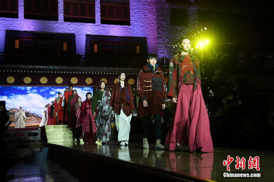 8月12日晚,由西藏職業(yè)技術(shù)學(xué)院與北京服裝學(xué)院共同打造的“凈美雪頓·美好生活”西藏民族服裝與服飾展演活動(dòng)在拉薩舉行?,F(xiàn)場通過傳統(tǒng)篇、現(xiàn)代篇與未來篇三個(gè)篇章,展演了藏族傳統(tǒng)服裝26套,設(shè)計(jì)創(chuàng)新服裝58套,共計(jì)84套服裝。圖為模特展示現(xiàn)代設(shè)計(jì)的創(chuàng)新藏族服飾。中新社記者何蓬磊 攝