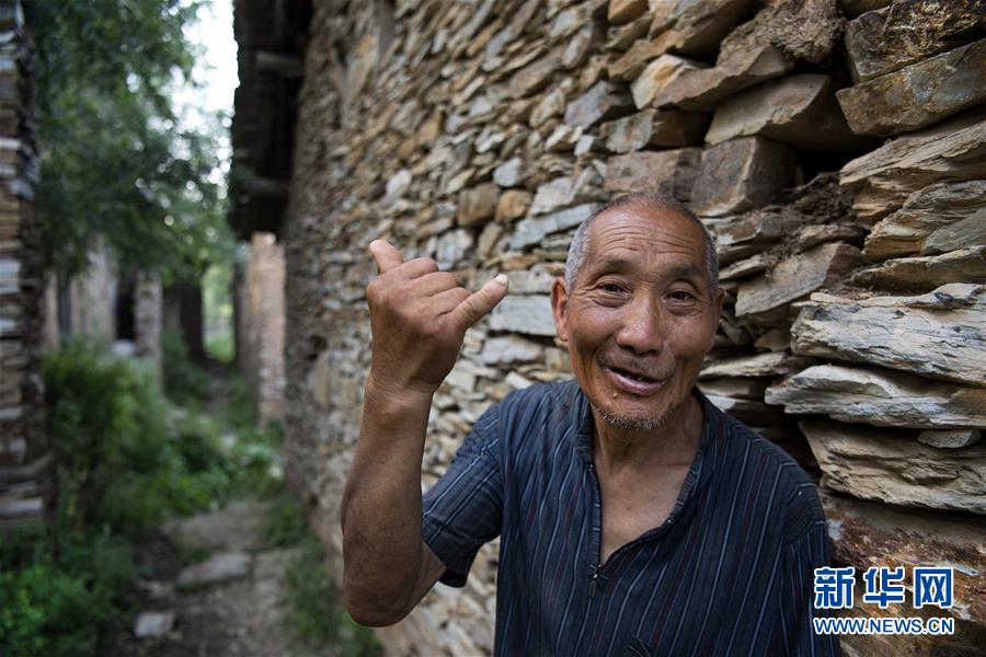 63歲的劉長鎖老人生于斯長于斯,整個村落僅他一人(8月7日攝)。他的孩子2014年搬進山下的新居。 新華社記者陶明攝