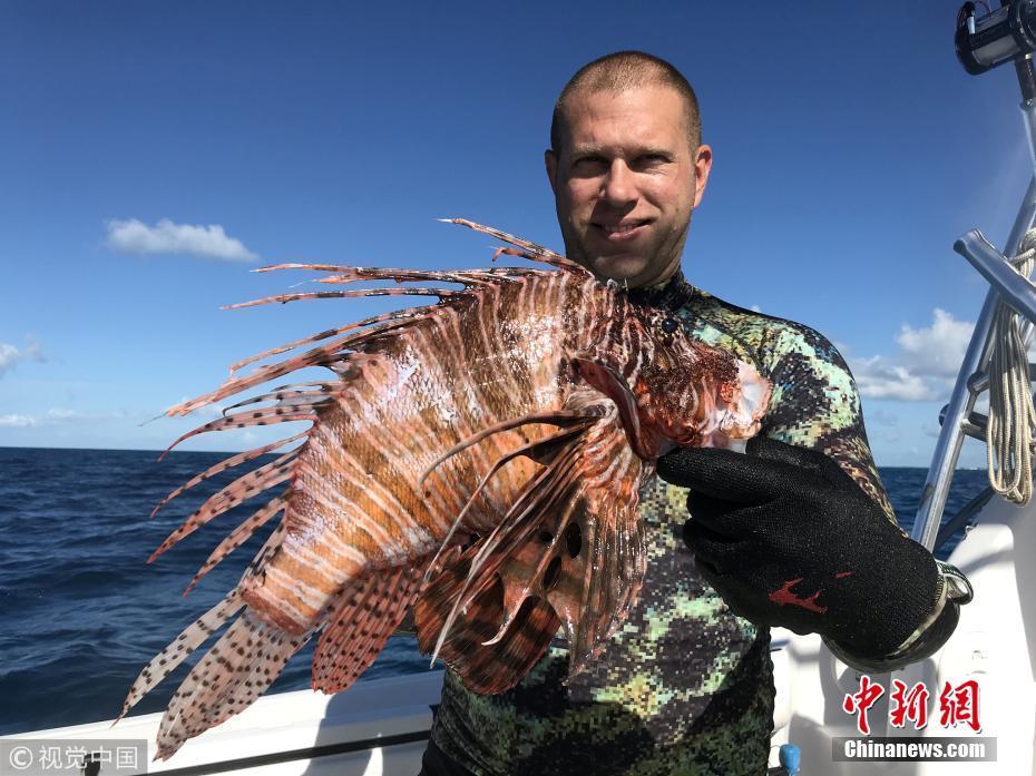 8月21日訊(具體拍攝時間不詳),近日,來自長島的Timothy Blasko打破了記錄,他捕獲了大西洋最重的獅子魚。37歲的Timothy Blasko是一名技術(shù)精湛的捕魚者,當(dāng)天,他和朋友們在佛羅里達群島伊斯拉莫拉達海岸捕魚時,遇到了這條大魚。Timothy向朋友要來了魚叉,瞄準(zhǔn)大魚的下方位置叉去,正中目標(biāo)成功捕獲。當(dāng)他們把這條魚和當(dāng)天捕獲的其它魚排在一起時,他們猜測這條魚可能會破紀錄。“它簡直是獅子魚中的哥斯拉!” Timothy描述道,“這條巨大的獅子魚重達3.1磅,刷新了大西洋迄今最重獅子魚的國家紀錄?!眻D片來源:視覺中國