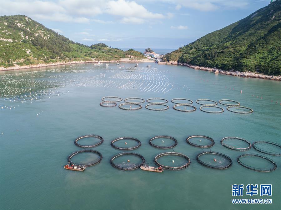 8月18日,漁船在南麂島馬祖岙海域的“海上牧場”大黃魚養(yǎng)殖區(qū)內(nèi)喂食(無人機拍攝)。南麂島位于浙江東南海域,水質(zhì)好,水溫、鹽度都適合大黃魚等養(yǎng)殖魚類的生長繁殖,因此當?shù)氐乃a(chǎn)品也一直保持了較高的品質(zhì)和口碑。進入8月,浙江省溫州市平陽縣南麂鎮(zhèn)海域上大片的大黃魚、貽貝等特色海產(chǎn)品養(yǎng)殖區(qū)域迎來豐收季節(jié),養(yǎng)殖戶們駕駛漁船在養(yǎng)殖區(qū)海域進行打撈收獲,在碧海藍天下構(gòu)成了一幅“海上牧場”的美麗豐收景象。近年來,南麂鎮(zhèn)政府引導漁民養(yǎng)殖戶充分發(fā)揮“靠海吃?!钡馁Y源優(yōu)勢,大力發(fā)展海洋養(yǎng)殖經(jīng)濟和海島旅游經(jīng)濟,實現(xiàn)了南麂由“生態(tài)美”向“產(chǎn)業(yè)美”,“產(chǎn)業(yè)美”向“經(jīng)濟美”的轉(zhuǎn)變。同時該鎮(zhèn)堅持以大黃魚、貽貝等為特色產(chǎn)業(yè)支撐,精準發(fā)展高效海洋養(yǎng)殖業(yè),重點培養(yǎng)一批新型職業(yè)漁民,依靠專業(yè)技術(shù)支持,實現(xiàn)深海仿生養(yǎng)殖,讓好生態(tài)造就好品質(zhì),重點打造南麂養(yǎng)殖品牌,組建營銷網(wǎng)絡(luò),拓展特色海產(chǎn)品市場。新華社記者 徐昱攝