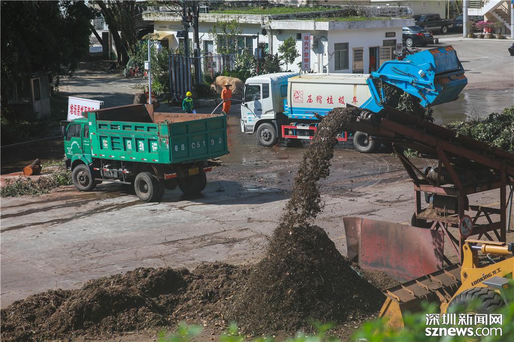 據(jù)了解,9月15日臺風到來前,組織運營單位深圳鐵漢生態(tài)公司對全場車間及工人宿舍進行加固,機器設備進行維護保養(yǎng),騰出場地準備接收被臺風刮斷送來的樹枝。16日臺風來時,敞開大門接收樹枝,用LED廣告牌發(fā)布通知,優(yōu)先接收綠化處管養(yǎng)的深南、北環(huán)、濱河、濱海、南坪快速等主干道樹枝。
