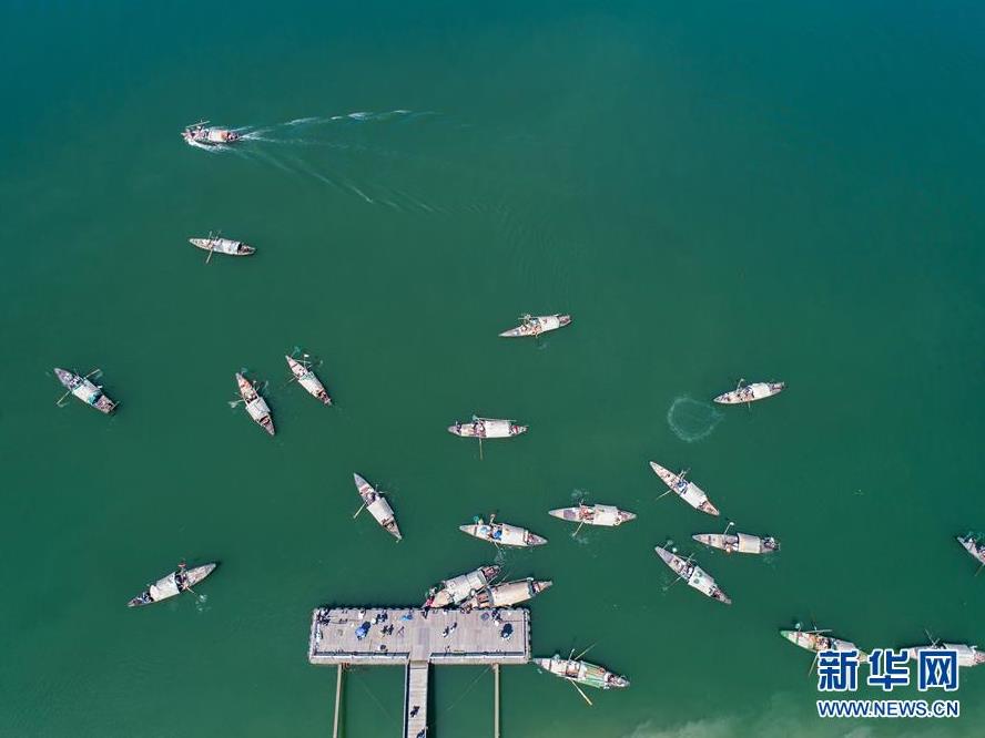 9月18日,漁民們乘坐漁船在富春江里捕撈江鮮(無人機拍攝)。 當日,浙江省杭州市富陽區(qū)場口鎮(zhèn)東梓關(guān)村開啟“江鮮大會”,數(shù)十艘小漁船一起駛向富春江江面,拉開了秋分節(jié)氣前捕撈江鮮的序幕。 東梓關(guān)村有著1000多年歷史,水陸交通方便,自古就是富春江南岸重要的商貿(mào)集散地,素有富春江“東流第一關(guān)”之稱。隨著近年來美麗鄉(xiāng)村建設(shè)的推進,東梓關(guān)村著力打造白墻黛瓦的江南民居,同時依托富春江豐富的江鮮魚類資源,在秋季舉辦特色“江鮮大會”,通過舉辦江鮮捕撈體驗、江鮮第一鍋開鍋、百鮮宴、鄉(xiāng)村小型音樂會、農(nóng)家菜大賽等活動,吸引各地游客前來感受富春江漁民豐收的喜悅和江南千年古村的獨特魅力,推動鄉(xiāng)村特色旅游發(fā)展。 新華社記者徐昱攝