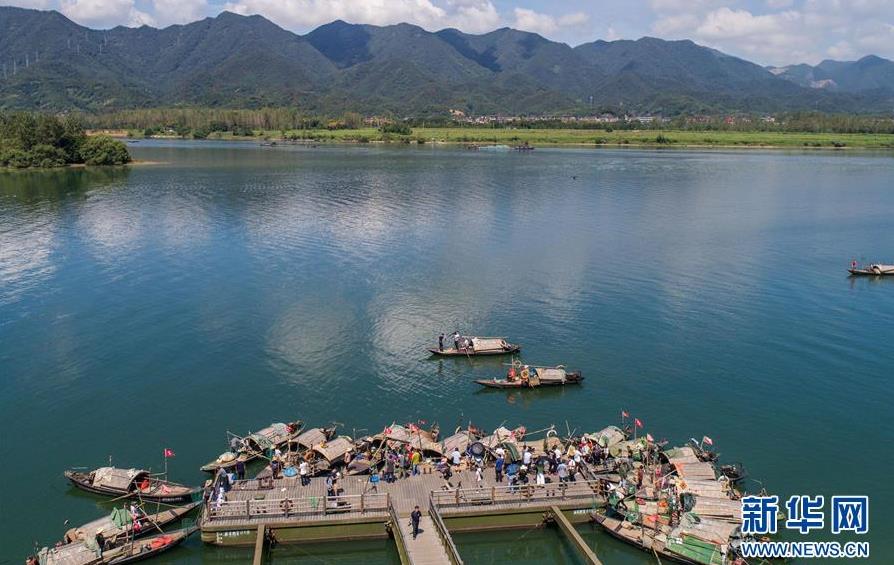 9月18日,漁民們乘坐漁船在富春江里捕撈江鮮(無人機(jī)拍攝)。 當(dāng)日,浙江省杭州市富陽區(qū)場(chǎng)口鎮(zhèn)東梓關(guān)村開啟“江鮮大會(huì)”,數(shù)十艘小漁船一起駛向富春江江面,拉開了秋分節(jié)氣前捕撈江鮮的序幕。 東梓關(guān)村有著1000多年歷史,水陸交通方便,自古就是富春江南岸重要的商貿(mào)集散地,素有富春江“東流第一關(guān)”之稱。隨著近年來美麗鄉(xiāng)村建設(shè)的推進(jìn),東梓關(guān)村著力打造白墻黛瓦的江南民居,同時(shí)依托富春江豐富的江鮮魚類資源,在秋季舉辦特色“江鮮大會(huì)”,通過舉辦江鮮捕撈體驗(yàn)、江鮮第一鍋開鍋、百鮮宴、鄉(xiāng)村小型音樂會(huì)、農(nóng)家菜大賽等活動(dòng),吸引各地游客前來感受富春江漁民豐收的喜悅和江南千年古村的獨(dú)特魅力,推動(dòng)鄉(xiāng)村特色旅游發(fā)展。 新華社記者徐昱攝