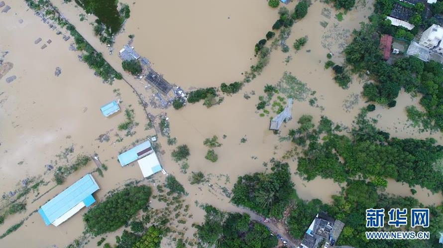 這是9月18日在廣東省陽江市陽春市拍攝的水浸情況(無人機(jī)拍攝)。 新華社記者張加揚(yáng)攝