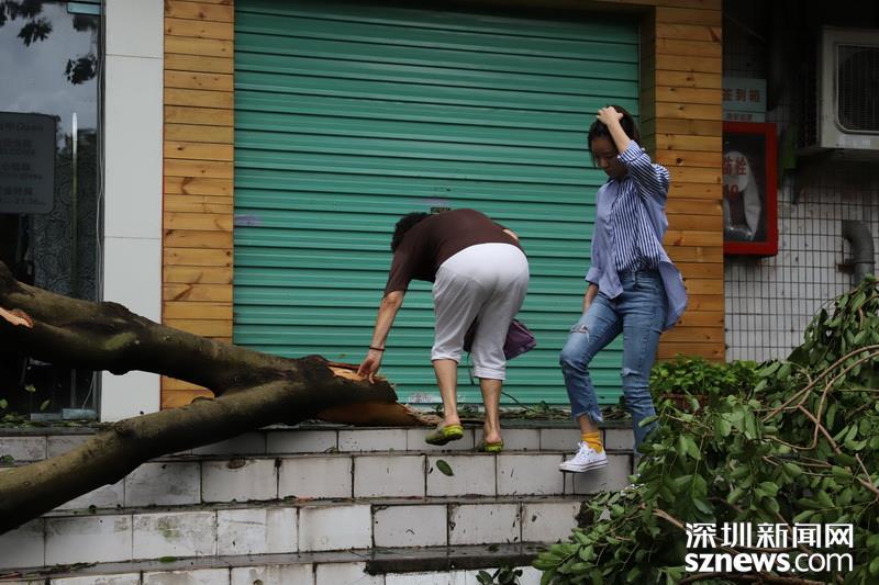 2018年9月17日10點(diǎn)03分,商報(bào)東二路,兩位市民走過,一邊是倒塌的樹木。(攝影:楊浩翰)