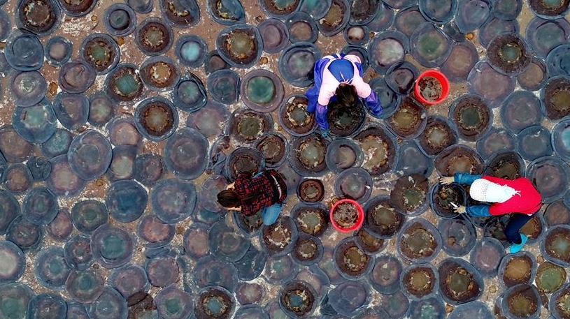 河北灤南:收獲海蜇
