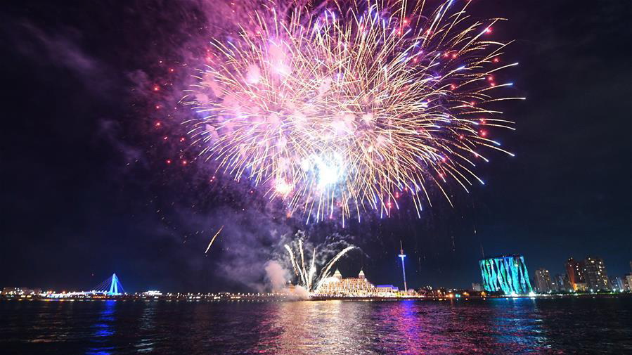 9月23日在淡水漁人碼頭拍攝的煙花秀。當(dāng)日,臺灣淡水漁人碼頭舉辦煙花秀,迎接中秋佳節(jié)。 新華社記者 金良快 攝