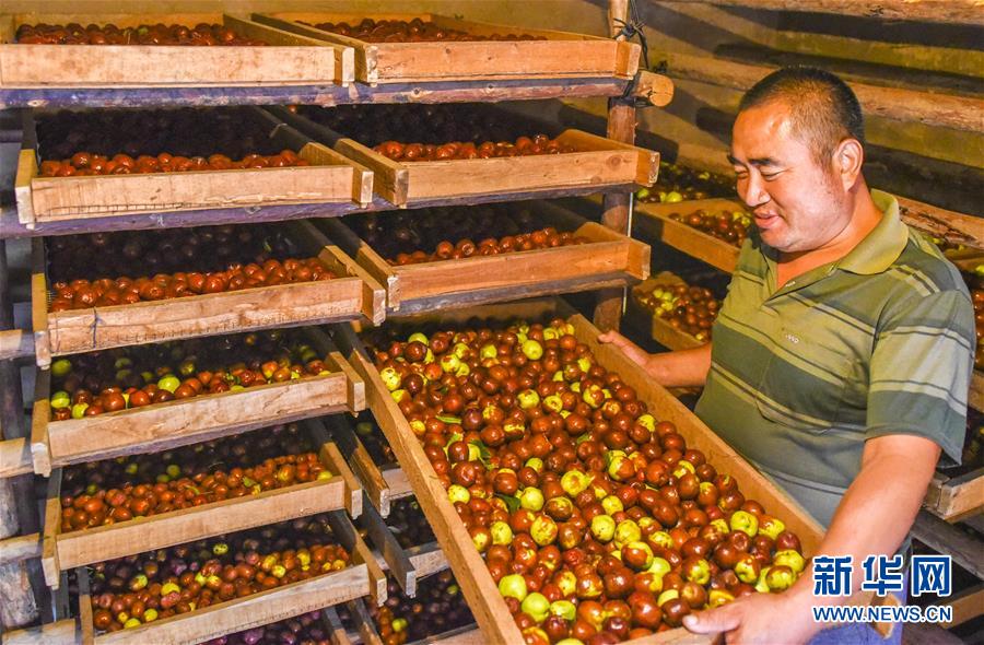 9月22日,河北省棗強縣棗強鎮(zhèn)孟家莊村的棗農將紅棗放進蒸房。 近日,河北省棗強縣的2000多畝棗園迎來收獲季,棗農們搶抓農時,采摘、篩選、晾曬紅棗,樂享秋收的快樂。 新華社記者李曉果攝