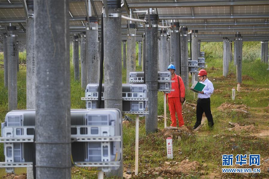 9月26日,工作人員在巡檢湖州市埭溪鎮(zhèn)東紅村的光伏發(fā)電站。新華社記者 徐昱 攝