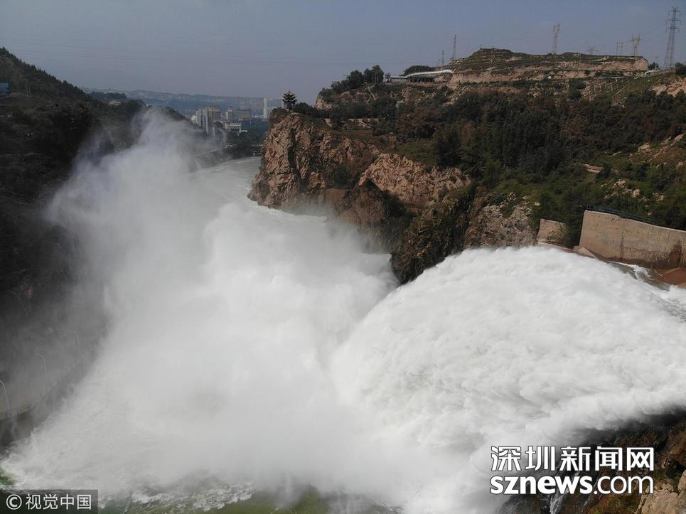 2018年9月11日,甘肅臨夏,劉家峽水庫泄洪力降水位。今年主汛期以來,受黃河上游持續(xù)大范圍降雨影響,劉家峽水庫入庫流量大幅增長,為確保黃河中下游安全度汛,劉家峽水電廠按照黃河防總調(diào)度要求,不斷調(diào)控下泄流量,全力做好防汛度汛工作。
