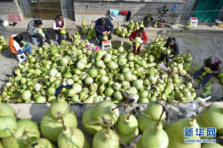 9月27日,山西省安澤縣和川鎮(zhèn)孔旺村的村民將葫蘆去皮。近日,山西省安澤縣和川鎮(zhèn)孔旺村種植的葫蘆喜獲豐收,村民們忙著將摘下的葫蘆去皮晾干。孔旺村于2016年成立葫蘆種植合作社,種植、采摘、加工等環(huán)節(jié)全部由貧困戶負(fù)責(zé),為貧困戶拓寬增收渠道。新華社記者 曹陽 攝