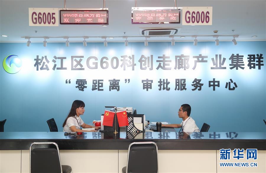這是上海市松江區(qū)行政服務中心內的G60科創(chuàng)走廊產業(yè)集群“零距離”審批服務中心(9月28日攝)。