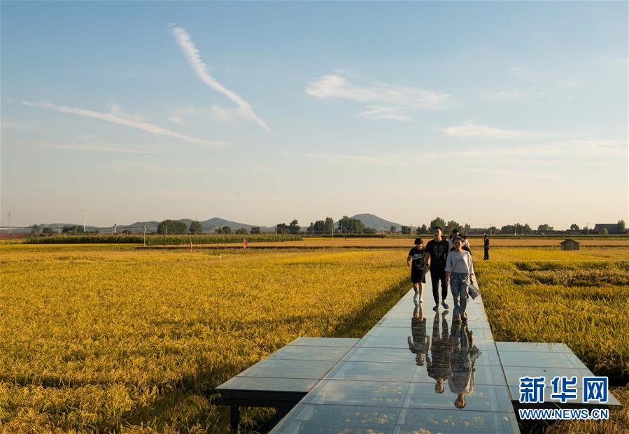 在吉林省舒蘭市,游人在稻田間行走(9月19日攝)。 金秋十月,位于“黃金水稻帶”的吉林省喜迎豐收,全省1200多萬畝水稻陸續(xù)開鐮。 記者在吉林省水稻主產(chǎn)區(qū)走訪發(fā)現(xiàn),連年豐收的喜人圖景背后,蘊(yùn)藏著許多引人矚目的“時(shí)代之變”。 新華社記者 許暢 攝