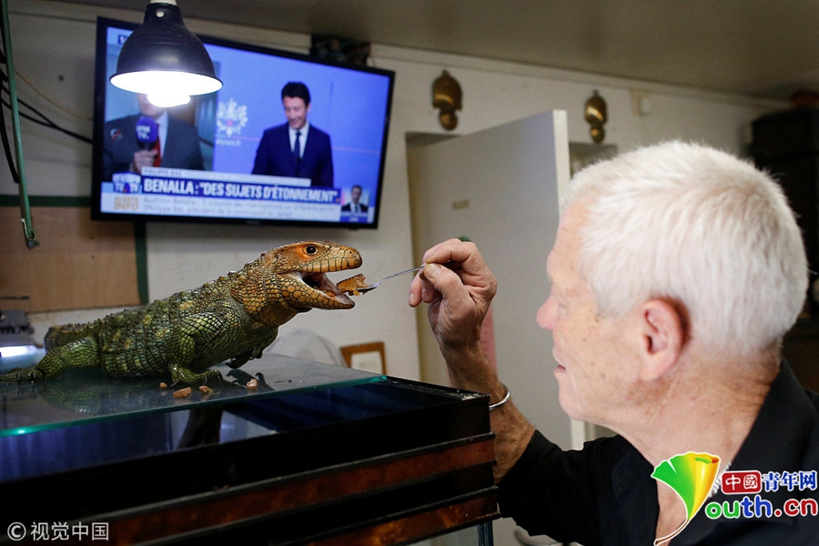用小湯匙喂蜥蜴。盡管Philippe Gillet的這些寵物看起來對他并無傷害,但是家里有400多只爬行動(dòng)物遍布角落的感覺是什么樣,請自行體會(huì)。