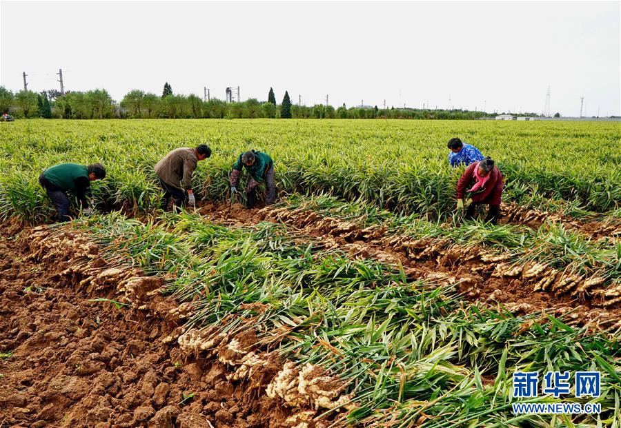 10月9日,秦皇島市撫寧區(qū)留守營(yíng)鎮(zhèn)桑園村農(nóng)民在收獲生姜。 近年來(lái),河北省秦皇島市撫寧區(qū)在農(nóng)業(yè)結(jié)構(gòu)調(diào)整過(guò)程中,引導(dǎo)當(dāng)?shù)剞r(nóng)民種植優(yōu)質(zhì)無(wú)公害生姜,并安排農(nóng)業(yè)技術(shù)員定期到田間指導(dǎo)農(nóng)民對(duì)生姜進(jìn)行標(biāo)準(zhǔn)化管理。據(jù)介紹,今年該縣生姜種植面積1萬(wàn)多畝,預(yù)計(jì)產(chǎn)生姜5萬(wàn)噸,種植戶每畝純收入達(dá)1萬(wàn)多元。 新華社記者 楊世堯 攝