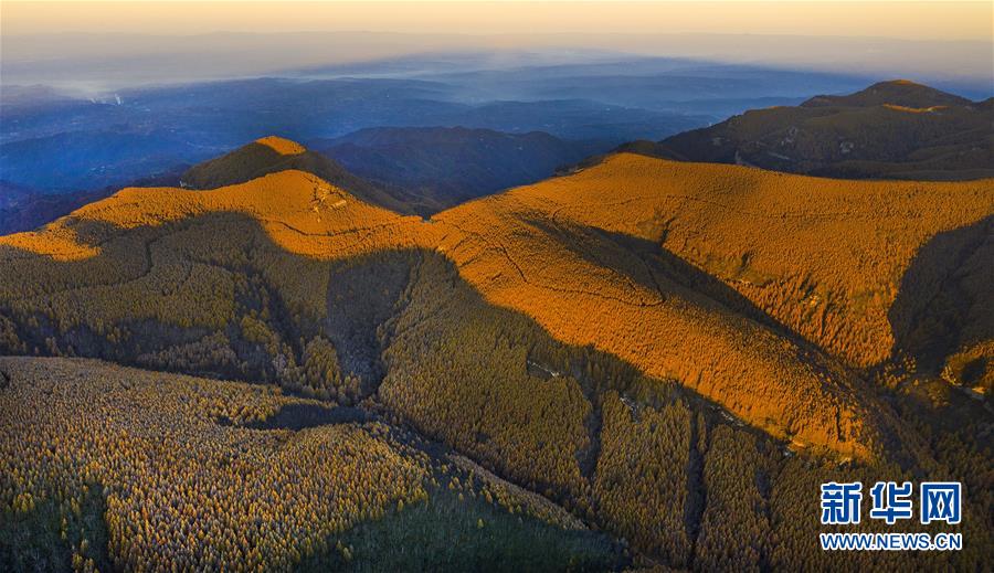 日出時分的好地方林場秋色(10月10日無人機拍攝)。 進入秋季,地處山西省沁源縣的好地方林場變成金黃一片,四面眺望,群山環(huán)繞,綿延起伏,林海蒼茫,宛如一座座金山展現(xiàn)在眼前。 1962年起,好地方林場職工拉開了造林的序幕,攻克落葉松山地育苗等難關,連續(xù)20年,共營造落葉松人工林29000余畝。如今的好地方林場森林總覆蓋率達98%以上,成為一處“林茂草奇花艷麗”的天然氧吧。 目前沁源全縣森林面積220萬畝,天然牧坡120萬畝,森林覆蓋率達56.7%,居山西省第一,是全國天然林保護重點縣、全國“油松之鄉(xiāng)”。 新華社記者陶明攝