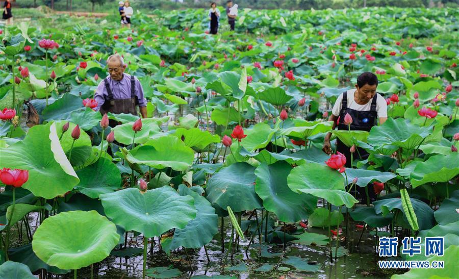 6月3日,荷農(nóng)們將觀賞性荷花裝盆準(zhǔn)備銷售。 進(jìn)入初夏時(shí)節(jié),浙江省湖州市長(zhǎng)興縣呂山鄉(xiāng)圣蓮苑荷花基地內(nèi)200多畝30多種各色荷花競(jìng)相開放,該基地也迎來了荷花銷售和旅游觀光的旺季。據(jù)介紹,呂山鄉(xiāng)是浙江省長(zhǎng)興縣當(dāng)?shù)貍鹘y(tǒng)的蓮藕產(chǎn)區(qū),近年來開始逐步升級(jí)打造“荷花之鄉(xiāng)”。不同于傳統(tǒng)的種荷收藕的思路,當(dāng)?shù)亟柚吧鷳B(tài)+創(chuàng)意”的理念種植、銷售觀賞盆栽荷花,一畝觀賞性荷花的產(chǎn)值可達(dá)到8萬元,比普通種植蓮藕增收超過20倍,同時(shí)也推動(dòng)了鄉(xiāng)村旅游經(jīng)濟(jì),帶動(dòng)荷農(nóng)收入增長(zhǎng),助力鄉(xiāng)村振興。新華社記者徐昱 攝