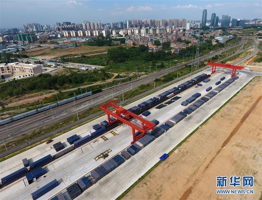 這是正在作業(yè)的南寧鐵路物流中心(5月23日無人機拍攝)。 廣西壯族自治區(qū)成立60年來,鐵路建設(shè)發(fā)生翻天覆地的變化。來自中國鐵路南寧局集團有限公司的數(shù)據(jù)顯示,1958年廣西鐵路總里程為1346.3公里,如今廣西鐵路總里程達5191公里。廣西與周邊相鄰省份間實現(xiàn)動車“公交化”開行。此外,北部灣港—重慶班列、東盟海產(chǎn)品冷鏈班列、“百色一號”果蔬專列等的開通和運營,強化了鐵路供給的針對性和有效性。鐵路成為助推廣西經(jīng)濟社會快速發(fā)展的“大動脈”。 新華社記者陸波岸攝