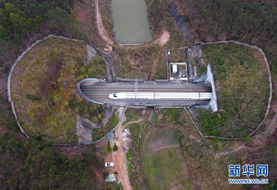 一列動車穿越南寧郊區(qū)一處隧道(2月11日無人機拍攝)。 廣西壯族自治區(qū)成立60年來,鐵路建設(shè)發(fā)生翻天覆地的變化。來自中國鐵路南寧局集團有限公司的數(shù)據(jù)顯示,1958年廣西鐵路總里程為1346.3公里,如今廣西鐵路總里程達5191公里。廣西與周邊相鄰省份間實現(xiàn)動車“公交化”開行。此外,北部灣港—重慶班列、東盟海產(chǎn)品冷鏈班列、“百色一號”果蔬專列等的開通和運營,強化了鐵路供給的針對性和有效性。鐵路成為助推廣西經(jīng)濟社會快速發(fā)展的“大動脈”。 新華社記者陸波岸攝
