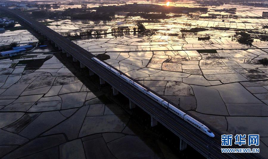 一列動車從廣西南寧市向沿海城市行駛(2月11日無人機拍攝)。 廣西壯族自治區(qū)成立60年來,鐵路建設(shè)發(fā)生翻天覆地的變化。來自中國鐵路南寧局集團有限公司的數(shù)據(jù)顯示,1958年廣西鐵路總里程為1346.3公里,如今廣西鐵路總里程達5191公里。廣西與周邊相鄰省份間實現(xiàn)動車“公交化”開行。此外,北部灣港—重慶班列、東盟海產(chǎn)品冷鏈班列、“百色一號”果蔬專列等的開通和運營,強化了鐵路供給的針對性和有效性。鐵路成為助推廣西經(jīng)濟社會快速發(fā)展的“大動脈”。 新華社記者陸波岸攝