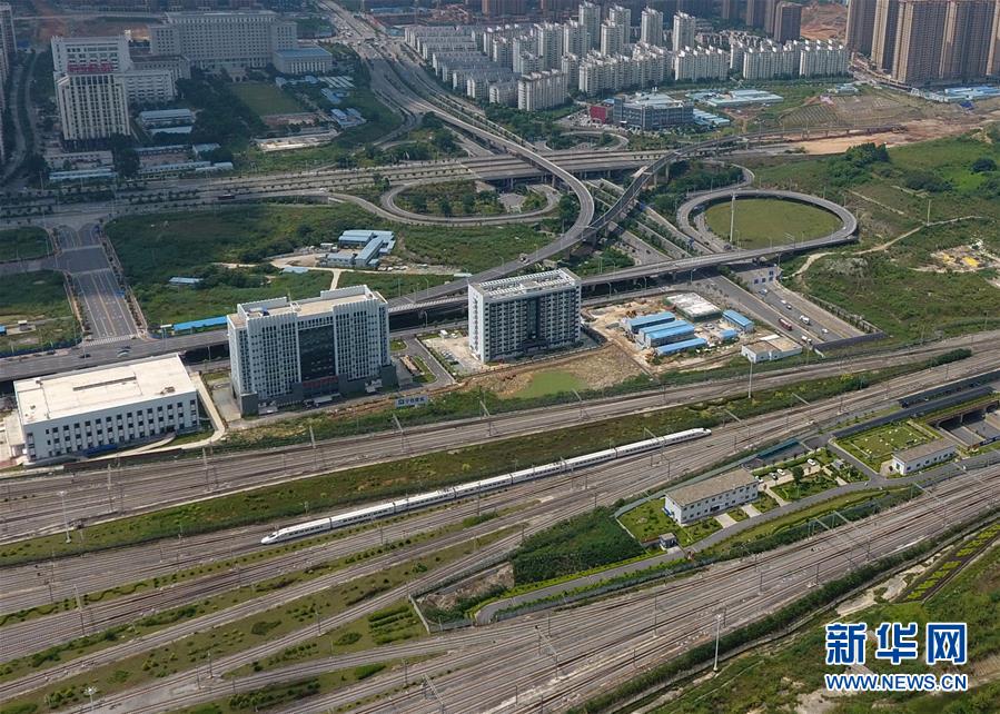 這是“零換乘”立體綜合交通樞紐——廣西南寧東站(9月4日無人機拍攝)。 廣西壯族自治區(qū)成立60年來,鐵路建設(shè)發(fā)生翻天覆地的變化。來自中國鐵路南寧局集團有限公司的數(shù)據(jù)顯示,1958年廣西鐵路總里程為1346.3公里,如今廣西鐵路總里程達5191公里。廣西與周邊相鄰省份間實現(xiàn)動車“公交化”開行。此外,北部灣港—重慶班列、東盟海產(chǎn)品冷鏈班列、“百色一號”果蔬專列等的開通和運營,強化了鐵路供給的針對性和有效性。鐵路成為助推廣西經(jīng)濟社會快速發(fā)展的“大動脈”。 新華社記者陸波岸攝