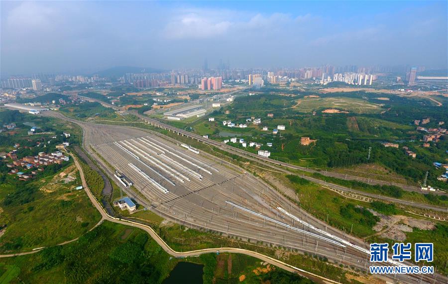這是廣西南寧動車所內(nèi)準備發(fā)往各地的動車組列車(7月1日無人機拍攝)。 廣西壯族自治區(qū)成立60年來,鐵路建設(shè)發(fā)生翻天覆地的變化。來自中國鐵路南寧局集團有限公司的數(shù)據(jù)顯示,1958年廣西鐵路總里程為1346.3公里,如今廣西鐵路總里程達5191公里。廣西與周邊相鄰省份間實現(xiàn)動車“公交化”開行。此外,北部灣港—重慶班列、東盟海產(chǎn)品冷鏈班列、“百色一號”果蔬專列等的開通和運營,強化了鐵路供給的針對性和有效性。鐵路成為助推廣西經(jīng)濟社會快速發(fā)展的“大動脈”。 新華社記者黃孝邦攝