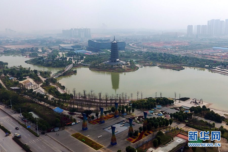 圖為無人機(jī)航拍的五象湖公園(攝于2018年3月5日)。新華網(wǎng)發(fā) 韋秀玲攝