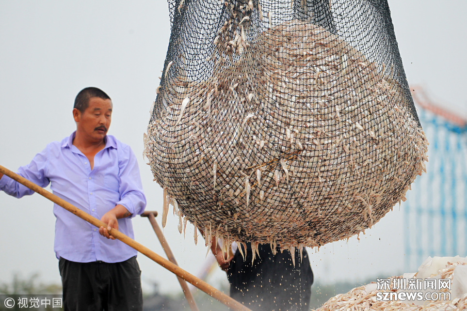 深圳新聞網(wǎng)訊 2018年9月8日,遼寧丹東,早上5點(diǎn),挖蟶人紛紛下到各個(gè)池子,要在海水海泥里艱辛勞作10小時(shí),直至下午3點(diǎn)集體上岸,等待買家的運(yùn)輸車隊(duì)運(yùn)走他們的勞動(dòng)成果。9月初,遼寧沿海養(yǎng)殖區(qū)進(jìn)入養(yǎng)殖海鮮的收獲季。在東港,常常出現(xiàn)數(shù)百人乃至上千人集結(jié)在池子里挖蟶子(這里特指縊蟶,即東港當(dāng)?shù)厝怂f(shuō)的小人仙。下同)的壯觀景象。在養(yǎng)殖海鮮的收獲季,成群的海鷗趁機(jī)“助陣“,人與大自然和諧共處的畫面令人嘆為觀止。