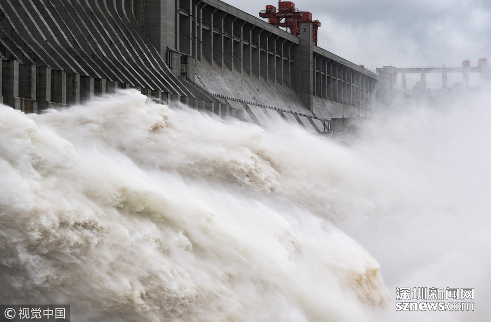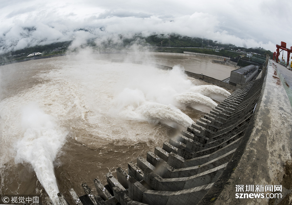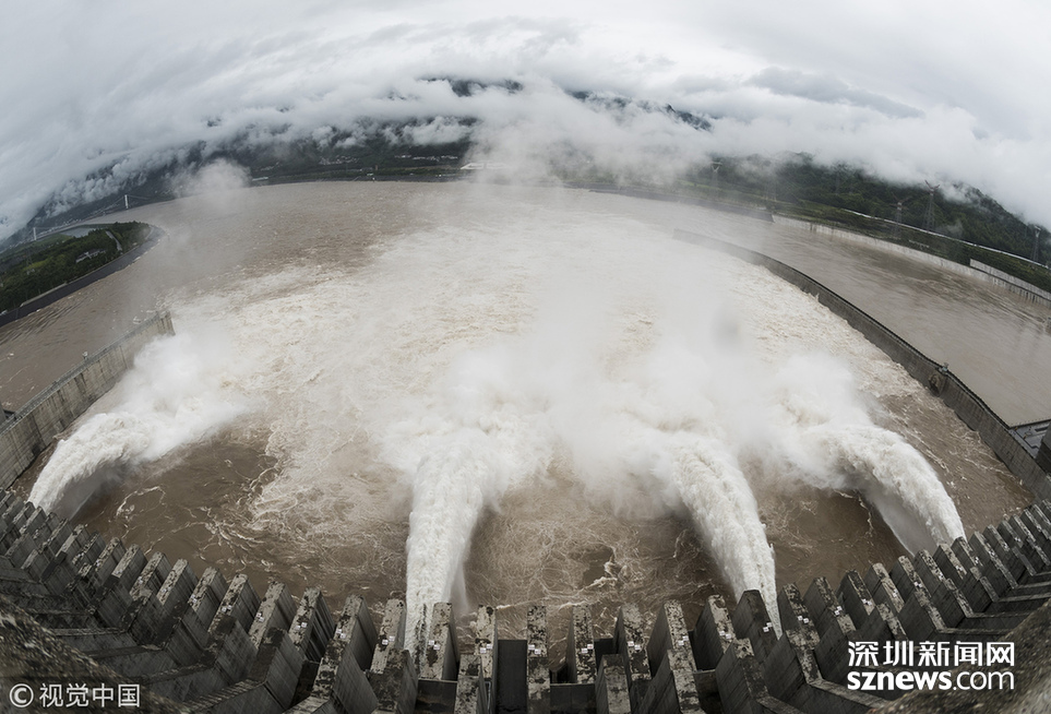 深圳新聞網(wǎng)訊  2018年7月5日,三峽大壩今年首次開閘泄洪。當(dāng)天,三峽大壩開啟5個泄洪孔下泄洪水,至中午12點左右減至2個。