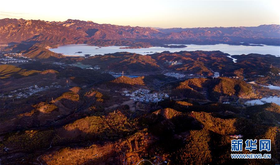 陽(yáng)光照在北京密云水庫(kù)旁的山野上(10月30日無(wú)人機(jī)拍攝)。