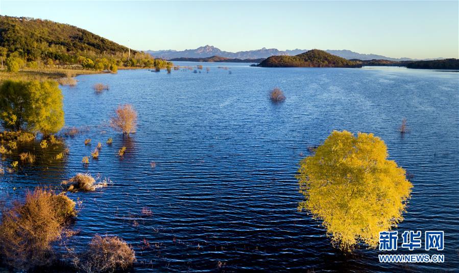 金秋時(shí)節(jié),北京密云水庫(kù)沿岸樹林逐漸變黃,山水相映,恬淡寧?kù)o。 新華社記者李欣攝